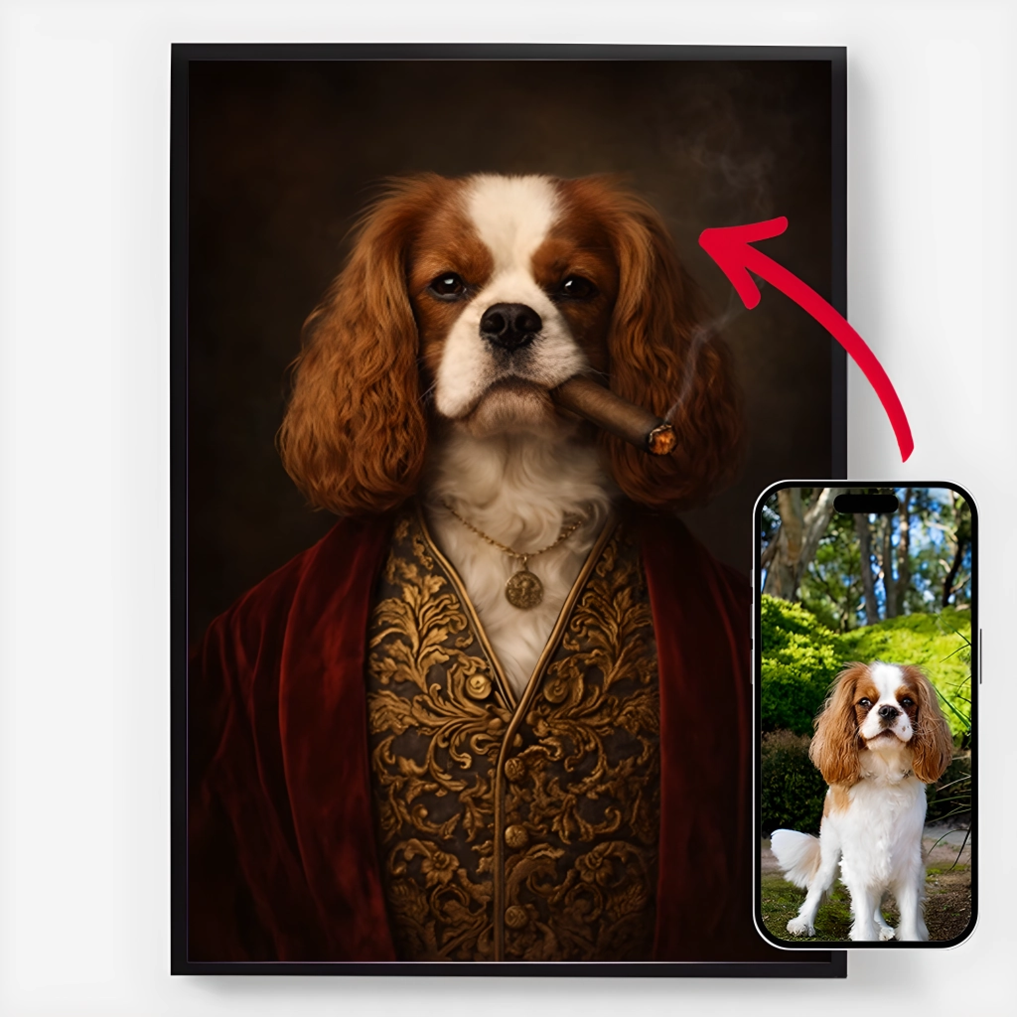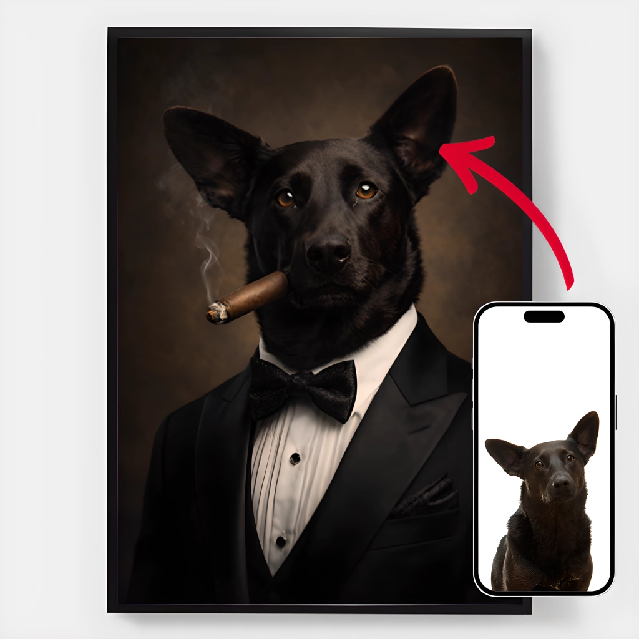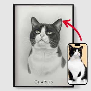 Våra husdjursporträtt-posters är det perfekta sättet att hylla din lurviga, fjädrade eller fjälliga vän. Med anpassad konst och en rad olika designs, gör dessa högkvalitativa tryck till ett unikt och hjärtevärmande tillägg till vilket rum som helst. Idealisk som en gåva för djurälskare eller en personlig minnessak, våra personliga djurposters är ett vackert sätt att hålla ditt älskade husdjur nära, även om de är långt borta.