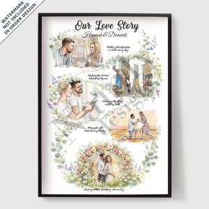 Perfekt för bröllop, årsdagar, inflyttningsfester eller helt enkelt som en meningsfull gåva, kombinerar våra personliga kärlek och familjeaffischer stilren design med emotionellt värde. Tryckta på högkvalitativt papper för en premiumfinish, är de skapade för att vara värdefulla i många år framöver.