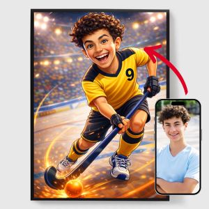 Välkommen till vårt sortiment av personliga hockey posters! Oavsett om du letar efter en unik present till en hockeyfan eller vill visa din kärlek till sporten i ditt eget utrymme, är våra affischer precis vad du behöver. Gör personlig med ditt favoritlag, spelare eller minnesvärd ögonblick, och njut av högkvalitativa, livfulla utskrifter som verkligen sticker ut. Förvandla din vägg med våra anpassade hockeyaffischer och hylla sporten du älskar.